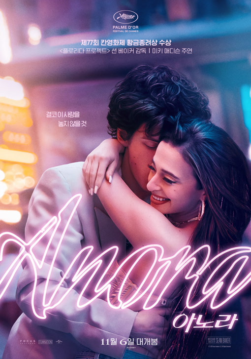 션 베이커 감독의 여덟 번째 장편 영화 <아노라>는 2024년 11월 6일 개봉한 작품이다. 이 영화는 제77회 칸 영화제 경쟁 부문에 초청되며 황금종려상을 수상하였고, 제29회 부산국제영화제에서도 상영된 바 있다. 영화제에서는 관람하지 못했으나 극장에서 직접 만날 수 있어 반가웠다.