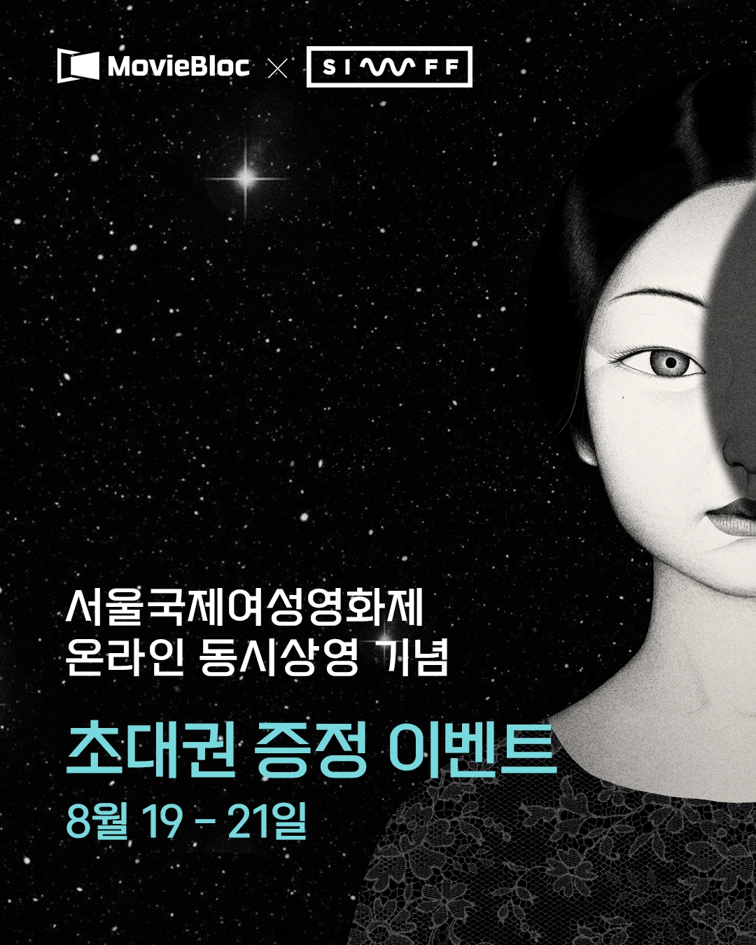 또 한가지 기쁜 소식을 알려드리겠습니다. 무비블록에서 서울국제여성영화제 온라인 동시상영을 기념으로 초대권 증정 이벤트를 열었는데요! 여러분들도 이 이벤트에 참여해보세요!