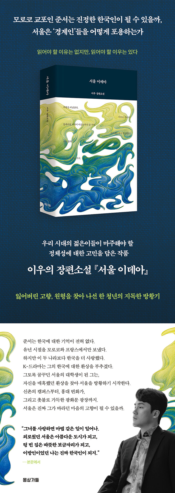 우리는 이 땅을 밟고 살아가지만 자신의 원형을 마주 하는데 상당한 어려움을 겪는다. 그것은 어떤 경계에 놓여 있는 사람들에겐 더욱 어려운 알으로 다가온다. 정체성에 대한 혼란을 누군가의 지독한 방황을 통해 더욱 자세하게 드러내고 있다. 책 <서울 이데아>는 그들의 이야기이자 우리의 이야기가 되고, 어디엔가에 뿌리내리고 싶었던 이의 진정한 마음은 어디에 정착하게 될지 끝까지 지켜봐야 할 것 같다. 꽤 굵은 페이지임에도 상당한 몰입감이 있고 술술 잘 읽히는 문체가 인상깊다.