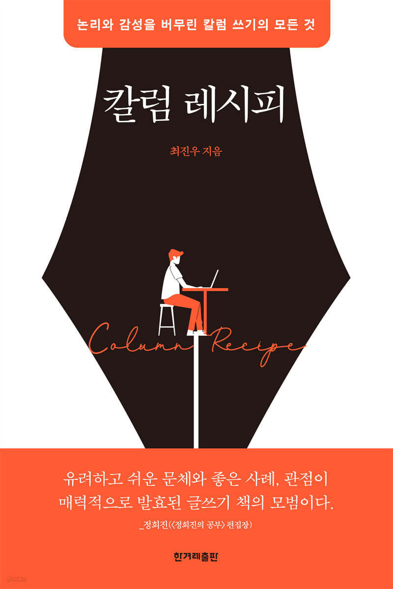 글을 읽기도 어려운데, 글을 쓰는 건 더욱 어렵다. 처음부터 완벽하고 완전한 문장을 구사해야 한다는 부담감이 크게 작용하는 게 크다. 하지만 글쓰기는 레시피와 같이 메뉴를 정하고 식재료를 손질하여 조리하여 멋진 그릇에 담는 요리 과정과 비슷하다. 책<칼럼 레시피>은 글쓰기의 초고부터 퇴고까지 이르는 과정뿐만 아니라 그 안을 꽉꽉 채울 수 있도록 도움을 준다. 이 책을 읽으면 나와는 거리가 멀 것 같은 칼럼이 성큼 다가오는 것 같다. 어려움으로 인한 두려움을 걷어내고 이 레시피대로 글을 쓰다 보면 근사한 한 편의 글이 완성될 것이다.